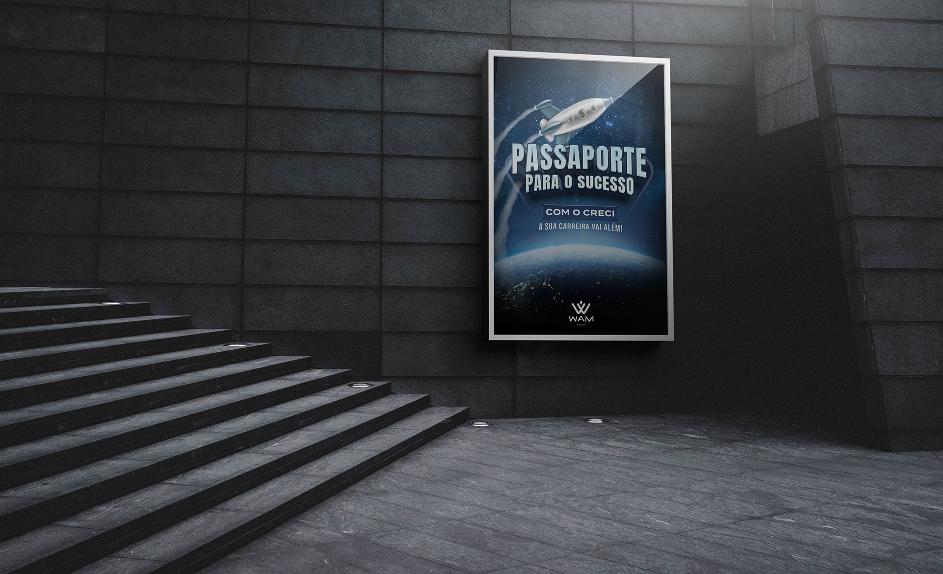 Conceito desenvolvido para campanha interna de endomarketing da WAM Group, com o objetivo de incentivar os parceiros a evoluírem suas carreiras profissionais por meio do CRECI (Conselho Regional dos Corretores de Imóveis).